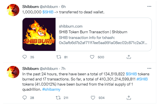 اکانت توییتر این شرکت بازی سازی نشان می دهد که تاکنون بیش از 358,000,000 SHIB را سوزانده است.