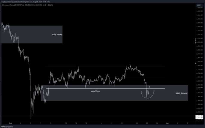 به گفته پوزیدون، تحلیلگر رمزارز، که در پستی در 28 آگوست در X نوشت ، به نظر می رسد قیمت اتر در حال تنظیم برای یک شکست قیمتی بالاتر از علامت روانی 3000 دلار است: