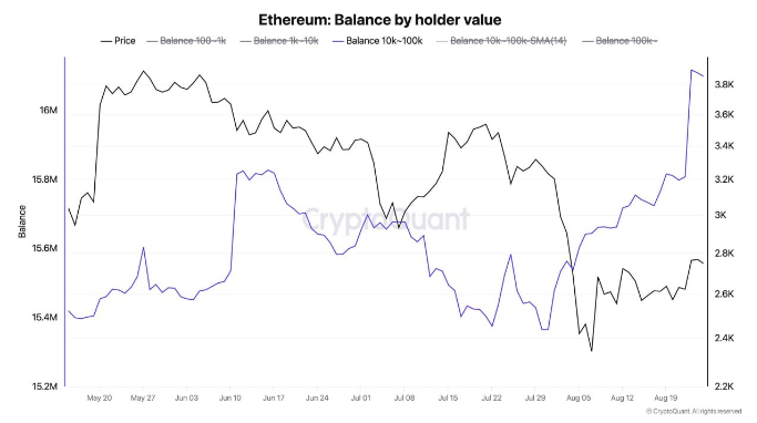 ساتوشی اسنایپر، تحلیلگر معروف در پست ایکس اشاره کرد که در یک سیگنال صعودی دیگر، نهنگ های اتر 200000 اتر به ارزش بیش از 540 میلیون دلار در چهار روز منتهی به 26 آگوست جمع آوری کردند.