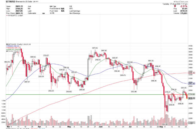 قیمت اتر باید همچنان بر مقاومت کلیدی 2700 دلار غلبه کند قبل از اینکه در سه ماهه چهارم 2024 به بالاتر از 3000 دلار برسد.