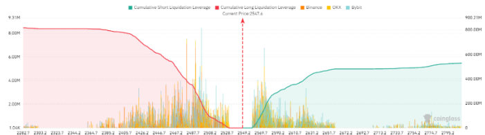 بر اساس دادههای کوین گلس، افزایش فرضی اتر بالای 2700 دلار، بیش از 481 میلیون دلار موقعیتهای فروش اهرمی تجمعی را در همه صرافیها منحل میکند.