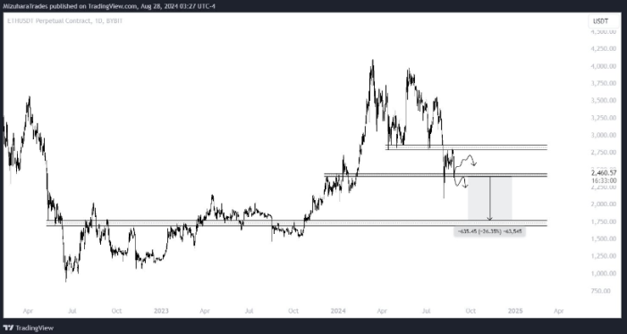 از سوی دیگر، طبق گفته معامله گر مستعار Mizuhara، که در پستی در 28 آگوست X نوشت ، خرس های اتر استدلال می کنند که اصلاح احتمالی تا 1750 دلار ممکن است: