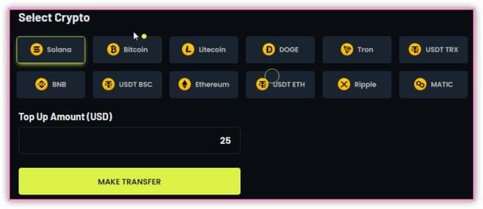 - Select Crypto: ارز مورد نظر برای شارژ شدن را انتخاب نمایید.