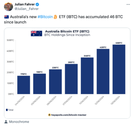 زمانی که بازارها در صرافی Cboe استرالیا در 4 ژوئن باز شدند ، ETF تک رنگ بیت کوین شروع به معامله کرد.
