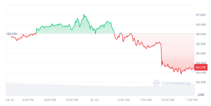 طبق داده های کوین مارکت کپ، در حال حاضر در خطر سقوط به زیر سطح بحرانی دیگر قرار دارد و در حال حاضر با قیمت 64247 دلار معامله می شود.