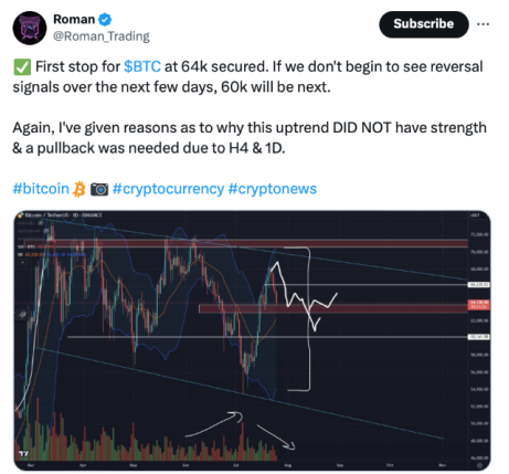با این حال، رومن، تاجر کریپتو گفت که این کاهش تنها یک اصلاح پس از افزایش بیت کوین پس از سوء قصد به ترور رئیس جمهور سابق آمریکا، دونالد ترامپ است .