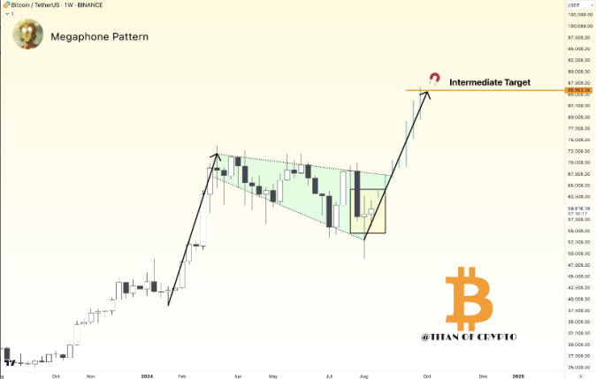 به گفته تحلیلگر معروف Titan of Crypto، اگر بیت کوین بتواند در ماه سپتامبر به فروش برسد، قیمت هدف اصلی بعدی قیمت بیت کوین می تواند حدود 86000 دلار باشد.