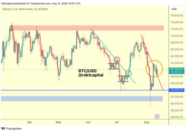 به گفته تحلیلگر معروف Rekt Capital که نوشت ، آزمایش مجدد موفقیت آمیز این خط روند نزولی باعث افزایش حرکت صعودی می شود.