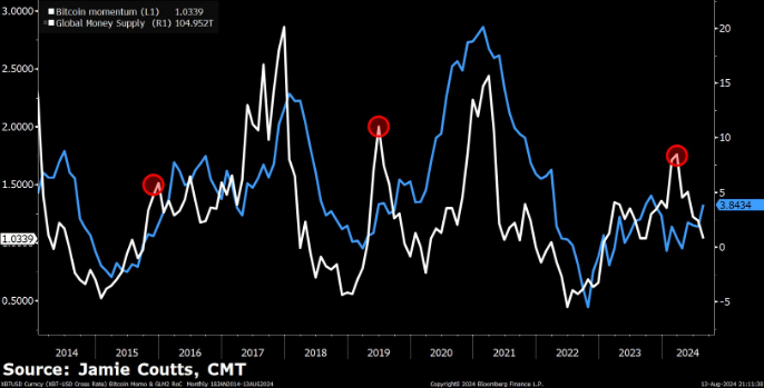 به گفته این تحلیلگر، نقدینگی رو به رشد جهانی از عرضه پول M2، همراه با وجوه قابل معامله در مبادلات بیت کوین (ETFs)، “راه اندازی کامل” را برای بیت کوین ایجاد می کند.