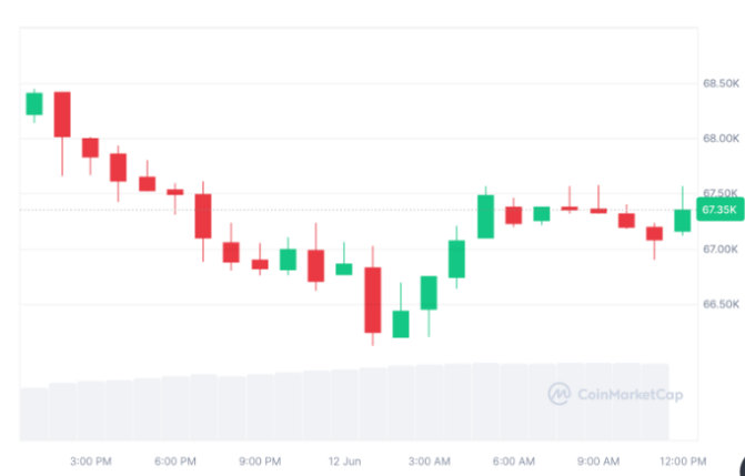 بیت کوین در 11 ژوئن به زیر 69000 دلار سقوط کرد – بالاترین سطح تاریخ این دارایی در نوامبر 2021 – سطحی که توسط معامله گران از نزدیک مشاهده می شود. به گزارش کوین مارکت کپ، در زمان انتشار، بیت کوین با 3.19 درصد کاهش در 24 ساعت گذشته با 67350 دلار معامله می شود.