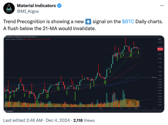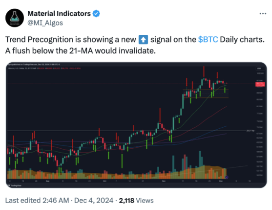 “تا زمانی که این روند ادامه داشته باشد، BTC باید بتواند پشتیبانی 96400 دلاری را پس بگیرد.”