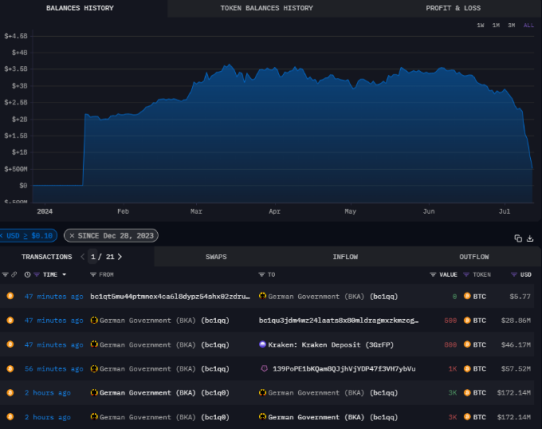 در آخرین نقل و انتقالات خود در 12 جولای، این کیف پول 800 بیت کوین به صرافی کراکن، 500 بیت کوین به کیف پول “bc1q” و 1000 بیت کوین دیگر به کیف پول “=”139p” ارسال کرد.