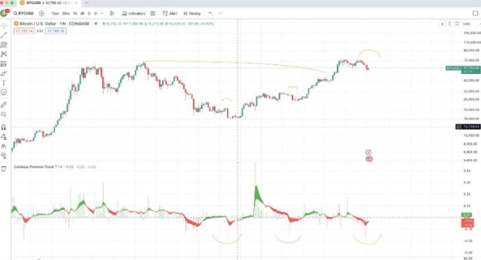 حق بیمه کوین بیس تفاوت قیمت بین بیت کوین در کوین بیس را اندازه گیری می کند که عمدتا توسط سرمایه گذاران ایالات متحده و بایننس استفاده می شود. حق بیمه نشان دهنده تقاضای ایالات متحده برای بیت کوین در مقایسه با سایر نقاط جهان است.