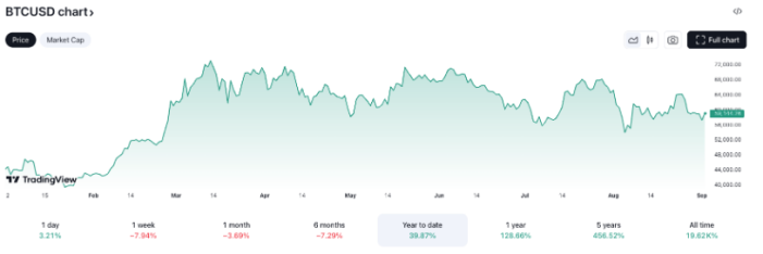 بیت کوین در حال حاضر با قیمت 59,140 دلار معامله می شود که 40 درصد از اول ژانویه افزایش یافته است. بر اساس داده های تریدینگ ویو، در زمان انتشار، بیت کوین از بالاترین قیمت خود یعنی 73,800 دلار که در 14 مارس به آن رسید، 20 درصد کاهش یافته است.