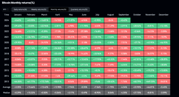 در میان مدت، گیلبرت گفت که سرمایه گذاران باید برای نوسانات بیشتر در ماه سپتامبر آماده شوند. از نظر تاریخی، سپتامبر بدترین ماه برای اقدام قیمت بیت کوین است، با میانگین بازده ماهانه -4.3٪ در یازده سال از سال 2013.