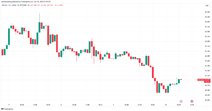 بیت کوین در زمان نگارش این مقاله نزدیک به 61000 دلار معامله شد که بر اساس داده های و تریدینگ ویو ، 4 درصد از ماه تا به امروز کاهش داشت.