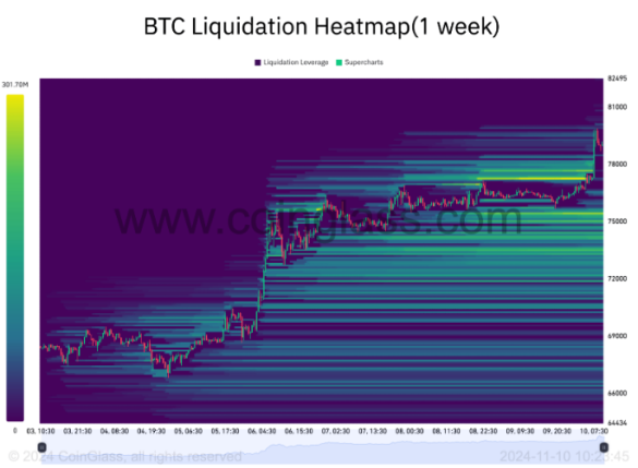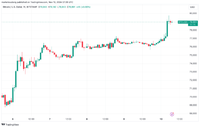 بیت کوین در حال اختلاف نظر است زیرا افزایش قیمت بیت کوین در آخر هفته، BTC/USD را به نزدیک به 80000 دلار می رساند.