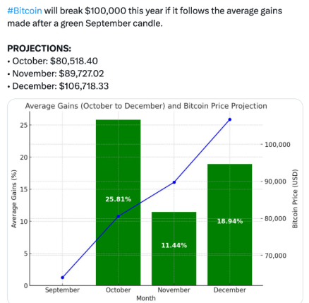 در همین حال، تحلیلگر همکار Archie، بنیانگذار BTC Archive، معتقد است که پس از ثبت سپتامبر سبز، بیت کوین می تواند در سه ماهه آخر سال 2024 به شتاب خود ادامه دهد و یک هدف شش رقمی برای BTC تا پایان سال تعیین کند.