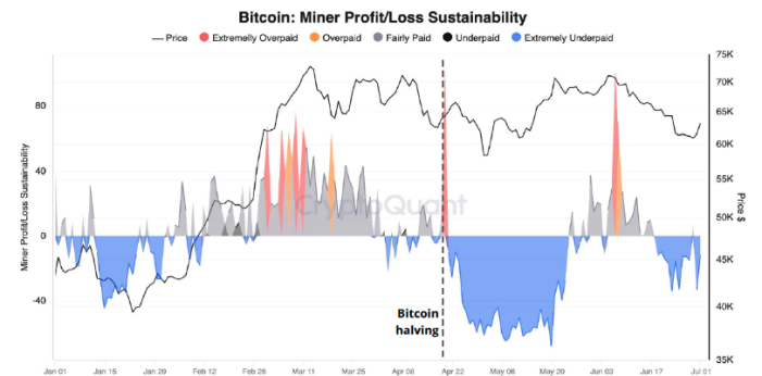 گزارش کریپتوکوانت همچنین اشاره کرد که در بیشتر دورهای که از نصف شدن میگذرد، ماینرها «بسیار کمدرآمد» دریافت کردهاند، همانطور که شاخص پایداری سود/زیان ماینر نشان میدهد.