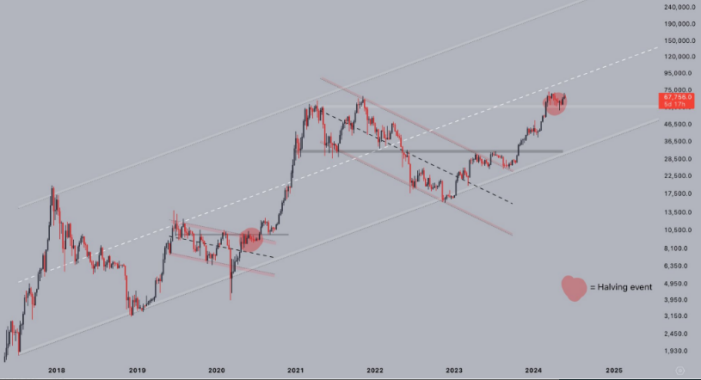 بزرگترین چالش، بالاترین قیمت در سال 2021 با 69000 دلار و سفر بعدی به 73800 دلار در سال جاری است.