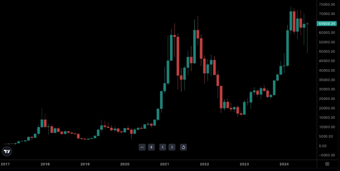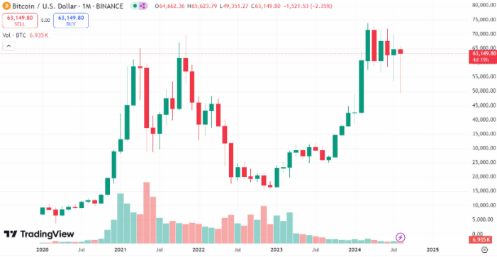 قیمت بیت کوین در زمان نوشتن این مقاله در 27 آگوست 1.2 درصد عقب نشینی کرد و به 63150 دلار معامله شد.