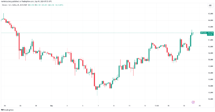 بیت کوین در 19 سپتامبر به دنبال کاهش 62000 دلاری برای حمایت بود زیرا بازارها کاهش 0.5 درصدی نرخ بهره توسط فدرال رزرو ایالات متحده را هضم کردند.