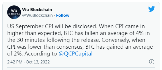 زمان انتشار داده های CPI امروز 8:30 صبح به وقت شرقی است. بیت کوین در زمان نوشتن این مقاله با قیمت 18728 دلار تغییر می کند.