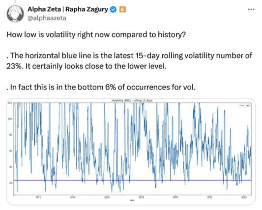 به گفته رافا زاگوری، مدیر ارشد سرمایه گذاری سوان بیت کوین، دوره بین 24 مه و 7 ژوئن در میان «6 درصد موارد پایین» برای نوسانات بود.