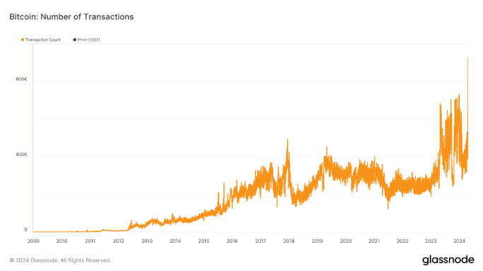 تراکنش های منتسب به پروتکل رونز بیش از 50 درصد از کل تراکنش های بیت کوین را تا 24 آوریل تشکیل می دادند. اوج آن در 23 آوریل رخ داد، زمانی که این تراکنش ها 81.3 درصد از پهنای باند را تشکیل می دادند. با این حال، تا 2 می، این رقم به 11.1 درصد کاهش یافته است.