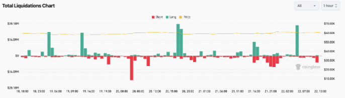 آخرین ارقام از منبع نظارتی CoinGlass، مجموع لیکوییدهای ارزهای دیجیتال 24 ساعته را در زمان نگارش 124 میلیون دلار نشان میدهد.