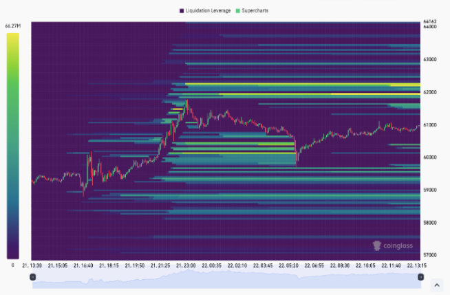 همچنین نشان داد که نقدینگی درخواستی به بالای 62000 دلار افزایش یافته است و این سطح را به هدف کلیدی برای تلنگر مقاومت/حمایت تبدیل کرده است.