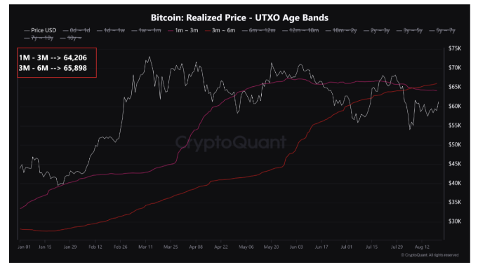 علاوه بر این، یکی دیگر از حوزههای کلیدی برای قیمت BTC، قیمت محقق شده کوتاهمدت است که اکنون حدود 65000 دلار است.