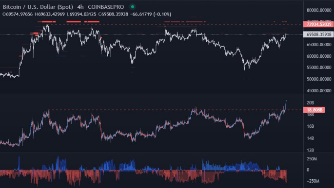 با این حال، با رسیدن OI آتی بیتکوین به بالاترین سطح تاریخ به بالای 39.4 میلیارد دلار ، قیمت BTC میتواند به زودی در مسیر رسیدن به بالاترین قیمتهای جدید قرار گیرد، که باعث میشود اصلاحات مداوم کوتاه مدت باشد.