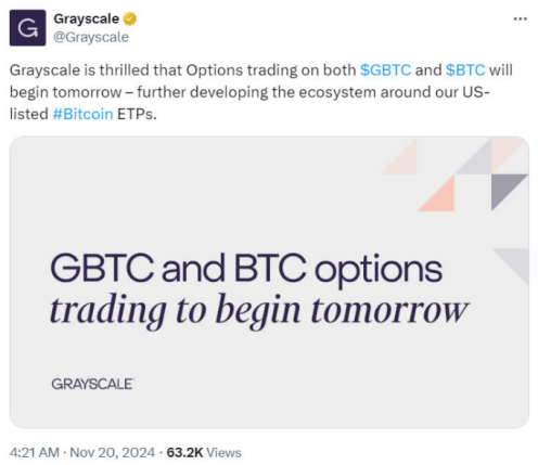 او در 20 نوامبر پس از راه اندازی این گزینه ها گفت : «بازار صعودی است که قیمت بیت کوین سال را بیش از 100 هزار دلار به پایان می رساند.