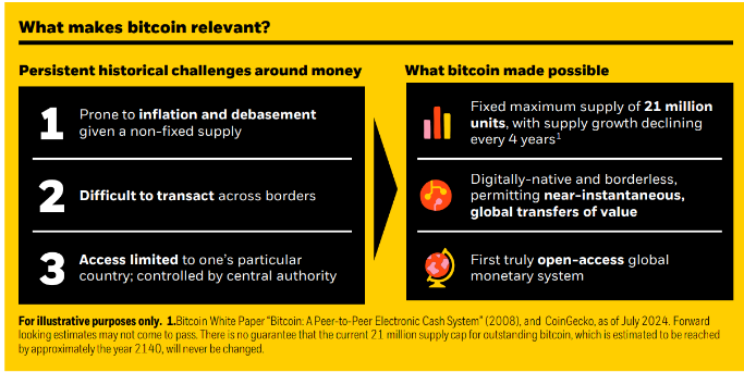 برگه سفید بلک راک اشاره میکند که ماهیت غیرمتمرکز و بدون مجوز بیتکوین، آن را به اولین «سیستم پولی واقعاً دسترسی باز» و نه فقط یک ارز دیجیتال تبدیل کرده است.