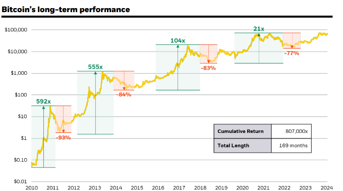 برای برجسته کردن انعطاف پذیری بیت کوین، غول مدیریت دارایی نموداری را به اشتراک گذاشت که نشان می دهد چگونه بازده بیت کوین از S&P 500 و قیمت طلا در رویدادهای مهم ژئوپلیتیک گذشته پیشی گرفت.