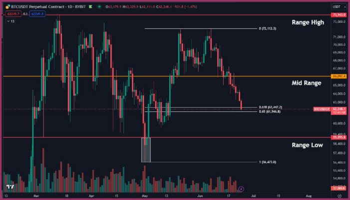 در همین حال، معاملهگر دیگر، Daan Crypto Trades، سطوح کلیدی را در محدوده معاملات چند ماهه بیتکوین تعیین کرد.