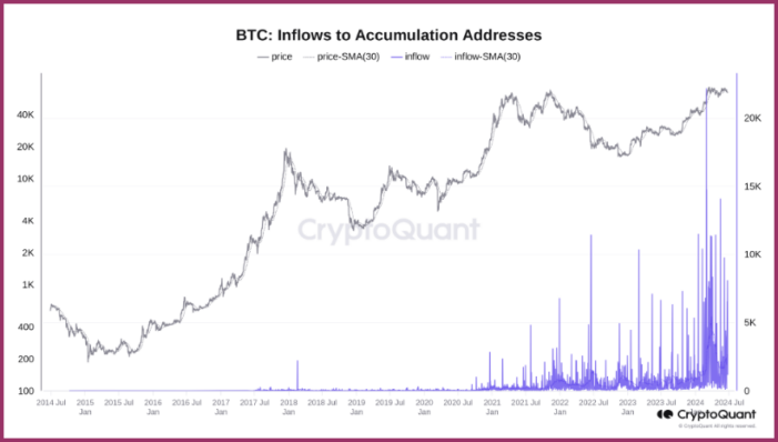 در همین حال، دادههای پلتفرم تحلیل زنجیرهای کریپتوکوانت نشان میدهد که ورودیها به آدرسهای انباشته از ۲۰ ژوئن شروع میشود.