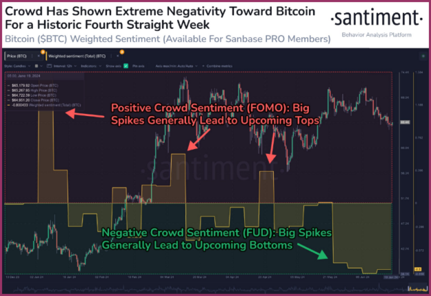 حتی زمانی که هنوز حدود 65000 دلار بود، شرکت تحقیقاتی Santiment به چیزی اشاره کرد که آن را “نادر” ایجاد ترس در میان فعالان بازار بیت کوین می خواند.