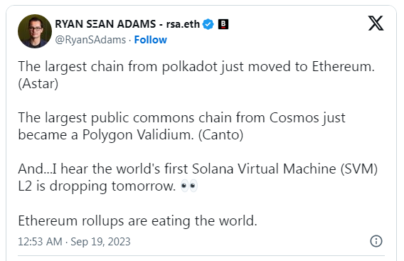 بلاک چین لایه 1 بومی کازماس، Canto به آخرین زنجیره ای تبدیل شده است که به عنوان یک مجموعه دانش صفر لایه 2 به اتریوم مهاجرت کرده است، پس از اینکه یک بلاک چین لایه 1 دیگر، Astar، برنامه های مشابهی را برای گسترش فراتر از اکوسیستم پولکادات به اتریوم اعلام کرد.