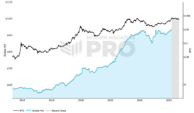 یکی از این کاتالیزورها نقدینگی بانک مرکزی جهانی است که با M2 اندازه گیری می شود. الدیب اظهار داشت: از لحاظ تاریخی، بیت کوین اندکی قبل از اینکه M2 جهانی به پایین ترین حد خود برسد، به پایان می رسد و به دنبال آن یک افزایش سریع قیمت که اغلب از رشد نقدینگی پیشی می گیرد، رخ می دهد.