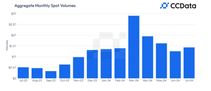 در یک چرخش قابل توجه، حجم معاملات جهانی کریپتو در صرافی های متمرکز 19 درصد در ماه جولای افزایش یافت و به 4.94 تریلیون دلار رسید. این اولین افزایش حجم معاملات در چهار ماه گذشته است.