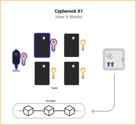 کارتهای X1 ایمن، بادوام و ضد دستکاری هستند و با سیستم عامل Javacard OS با رتبه امنیتی EAL6+، همان رتبه امنیتی کارتهای اعتباری و نقدی، اجرا میشوند. ارتباط بین MCU و این کارتها توسط PN532 از طریق NFC در کیف پول سایفر راک فعال میشود که از اتصال تلفنهای هوشمند نیز پشتیبانی میکند.