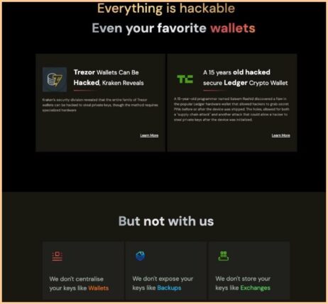 اول از همه، سایفر راک با پاشنه آشیل کیف پولهای ارز دیجیتال – آسیبپذیری عبارت بذر – خداحافظی میکند، در حالی که همچنان به کاربران اجازه میدهد بدون نیاز به اعتماد به شخص ثالث، کنترل بدون نیاز به اعتماد بر داراییهای خود را حفظ کنند. آسیبپذیری عبارت بذر به روشهای متعددی اشاره دارد که در آنها اعتماد به عبارت بازیابی شما به یک تکه کاغذ شکننده میتواند منجر به از دست رفتن کامل سرمایه شود. اگر میخواهید به خطرات مرتبط با عبارات بذر بپردازید، ما این خطرات را به طور مفصل در بررسی زنگو پوشش میدهیم.