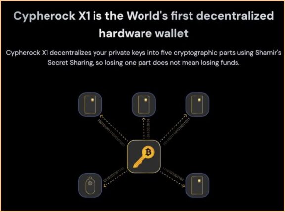 کیف پول سختافزاری سایفر راک ایکس وان (Cypherock X1)، اولین کیف پول جهان است که به پشتیبانگیری از عبارت اولیه نیاز ندارد. این کیف پول از 1 دستگاه اصلی (X1 Vault) و 4 کارت هوشمند NFC با تراشه EAL 6+ تشکیل شده است؛ همچنین، حتی با گم شدن 3 سه کارت، داراییهای شما کاملاً امن میمانند. طراحی خلاقانه، سیستم ضدسرقت KeyLabs، پشتیبانی از بیشاز ۹۰۰۰ رمزارز، NFT و ارتباط با DeFi از طریق WalletConnect جزو ویژگیهای سایفر راک ایکس وان هستند.