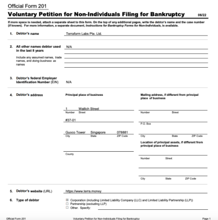 ترافورم لبز دو کوان، شرکت پشتیبان استیبل کوین TerraUSD (UST) که اکنون از بین رفته است، درخواست حمایت از ورشکستگی در ایالات متحده داده است.