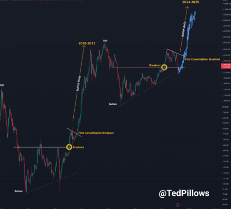 با این حال، بر اساس الگوهای نمودارهای تاریخی، قیمت اتر را میتوان در سه ماهه اول سال 2025 تعیین کرد.