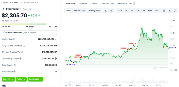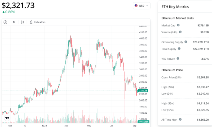 قیمت اتر بیش از 32 درصد از زمان عرضه ETFهای اتر ایالات متحده برای تجارت در 23 جولای – زمانی که ETH بالای 3400 دلار بود – کاهش یافت.