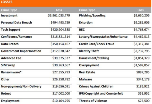 کلاهبرداری سرمایه گذاری بیشترین گزارش کلاهبرداری رمزنگاری بوده و بیشترین زیان گزارش شده با بیش از 3.9 میلیارد دلار توسط کلاهبرداران به سرقت رفته است.