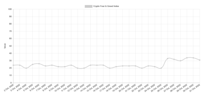 در زمان انتشار، شاخص ترس و طمع در ارزش 30 قرار دارد و «ترس» در میان اکثر معاملهگران و سرمایهگذاران ارزهای دیجیتال خردهفروشی حاکم است.